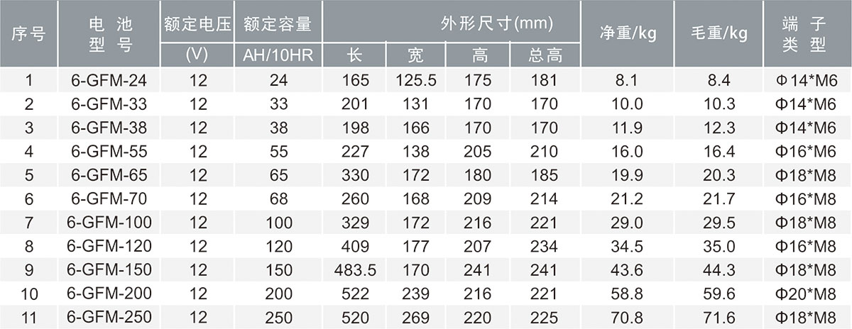 產(chǎn)品系列:容量范圍:33AH-250AH 電壓等級(jí):12v